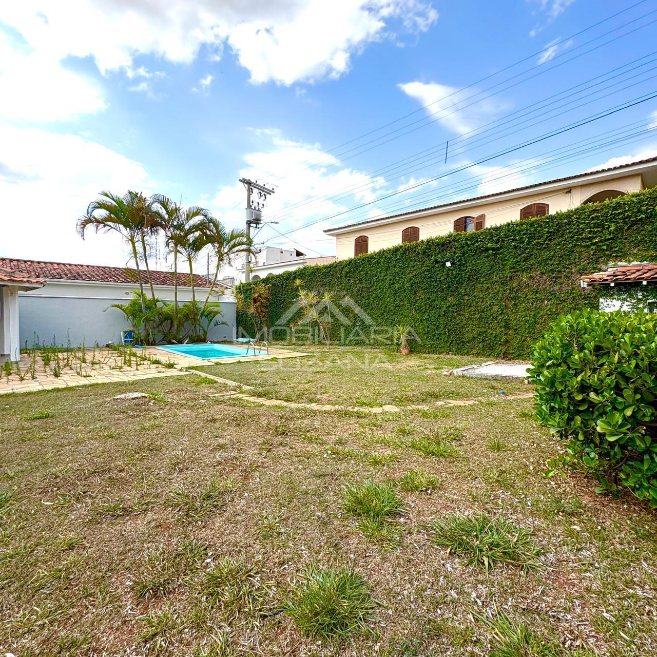 Área de Lazer: Amplo quintal gramado com paisagismo, piscina, quiosque churrasqueira, banheiro, canil.